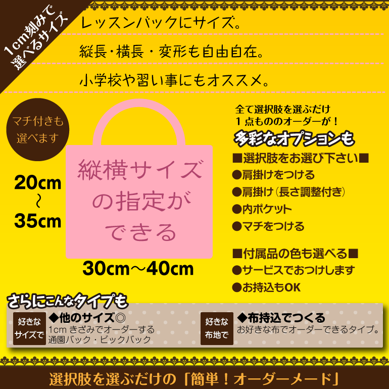 【日本製】1cm刻みでサイズが選べる オーダーレッスンバッグ 布+製作タイプ オーダーメイド ショルダー おしゃれ 男の子 女の子 ディズニー ポケモン マリオ 鬼滅の刃 キティー スヌーピー 図書バッグ 手提げバッグ 幼稚園 ディズニー 手提げ 手作り 電車 車 新幹線 手提げ