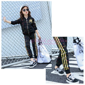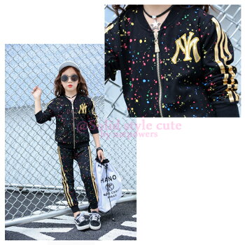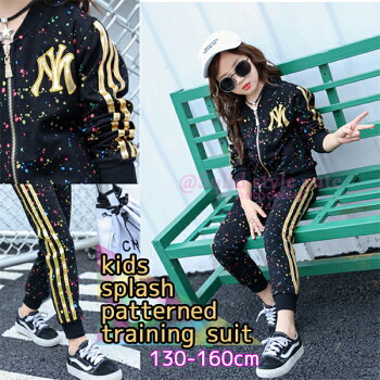 キッズ ジャージ スプラッシュ柄 セットアップ 上下 120 130 140 150 160 cm 長袖 ジュニア 子供服 スポーツウェア トレーニングウェア トレーナー ダンスウェア 上下セット スウェット ルームウェア 韓国子供服