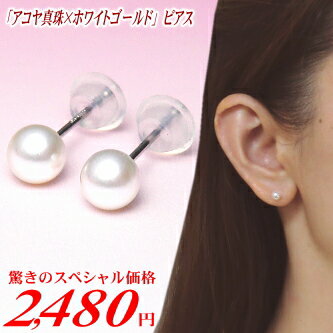 真珠 ピアス ホワイトゴールド アコヤ真珠 ( あこや真珠 本真珠 真珠ピアス パールピアス ) 【メール便(ポストに投函)でのお届け】【メール便送料無料】【初めてのお客様限定】